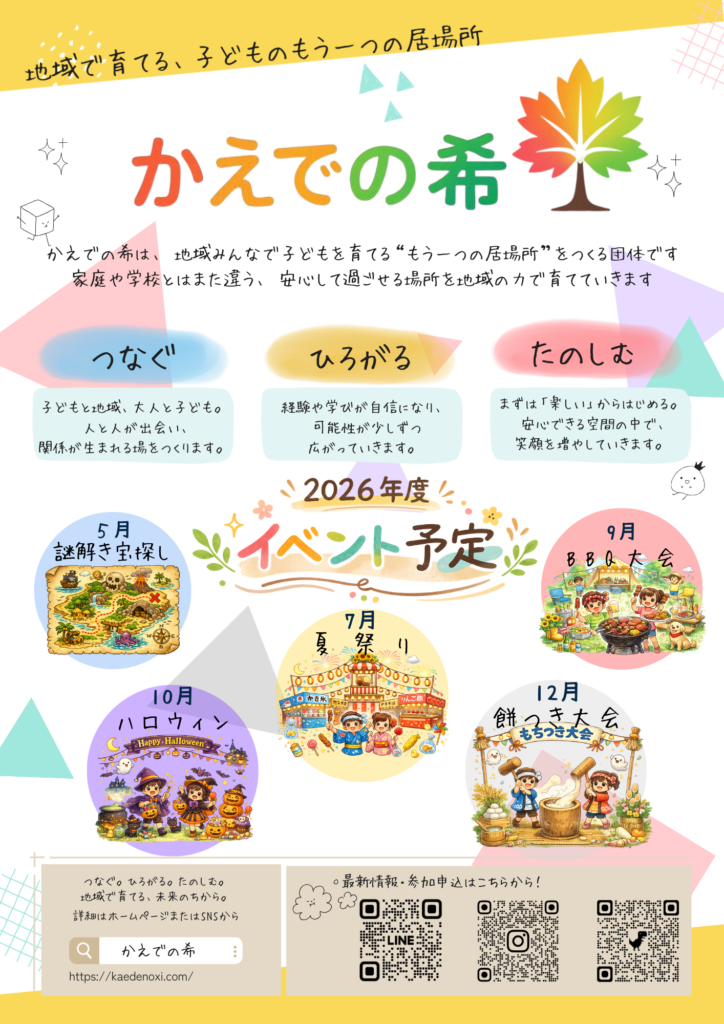 ※ 詳細や参加申込は、SNSまたはLINE公式アカウントより随時お知らせいたします。